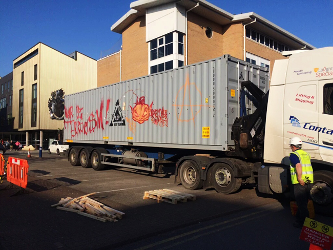 #AdpRiotTour at Bruton Art Factory, Somerset  #AdpRiotTour at Piazza Terracina, quayside as part of Art Week Exeter, Exeter  #AdpRiotTour at Piazza Terracina, quayside as part of Art Week Exeter, Exeter  #AdpRiotTour container arriving at Cardiff Metropolitan University  ADP in Penderyn Square, Merthyr Tydfil  ADP at Coventry University Square           SELECTED REGIONAL AND NATIONAL ADP RIOT TOUR 2016 COVERAGE  | Guardian G2
