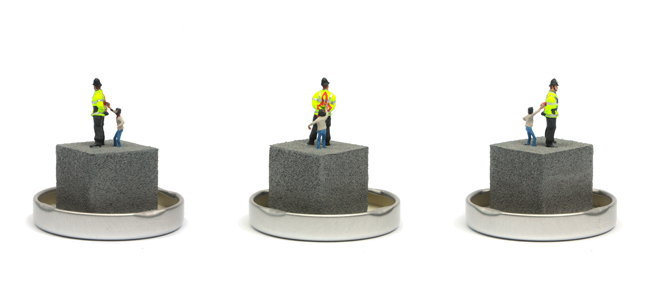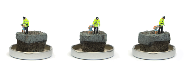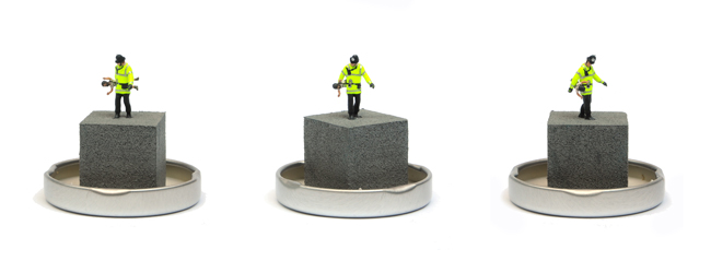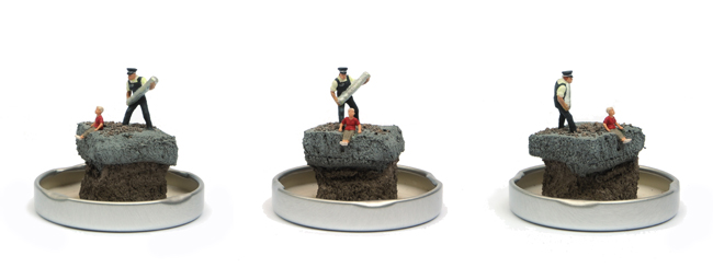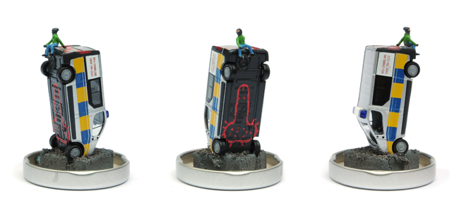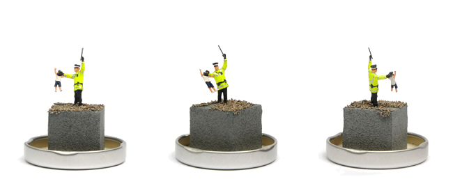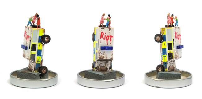 PLEASE NOTE: Each model is individually made and will vary slightly from the one shown. The position and clothing of the PC and Banksy will change from piece to piece depending on which figures the artist has to hand as he makes the edition.