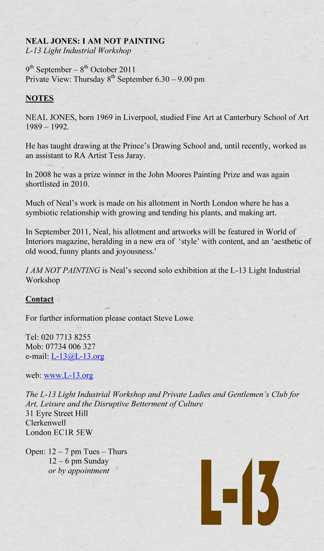 Online Catalogue | L-13 related EXHIBITIONS | Exhibitions ARCHIVE | COMPLETED EXHIBITIONS June 2011 - December 2012 | Neal Jones - I AM NOT PAINTING | INFORMATION