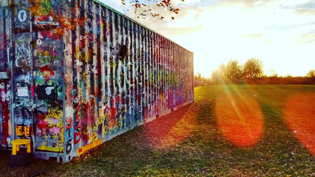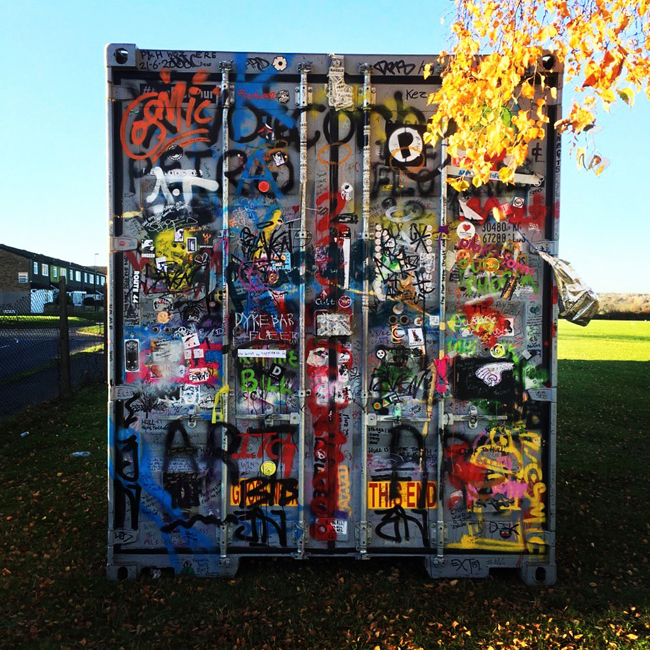 A girl making her mark on the ADP 1 container in Exchange Street Car Park, Macclesfield.