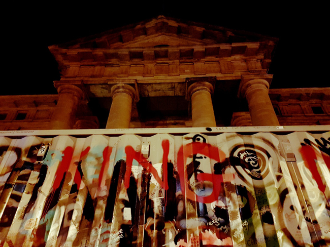 On Saturday 19th November there was a full day of events. Hundreds of placards were created by members of the public, coordinated by Ailsa Holland. A new map of the world was drawn by dozens of contributors, facilitated by Becca Smith. Questions on the topic of Rioting and Macclesfield were buried by Neil Puttick and were uncovered by members of the public and discusssed. A wall of food was collected and donated to Silklife Food Bank. Live music and poetry was performed throughout the afternoon and a pop up rave with DJ's Johnstone McGuckian and Si Lock finished a day.