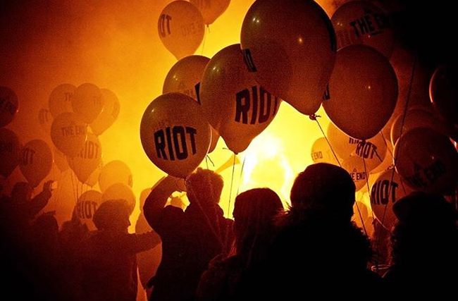For the closing event hosts from the whole tour joined guests to write their message to the world on postcards attached to 1,000 RIOT balloons, which were ceremonially released at 20:23 to the sound of the Red Army Choir and the Horns of the Apocalypse.